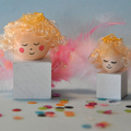 Pogledajte kako izraditi anđela od vatene kuglice i drvene kockice. -