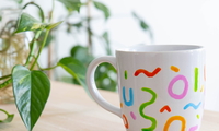 Mug with colorful strokes and Marabu Porcelain & Glass
