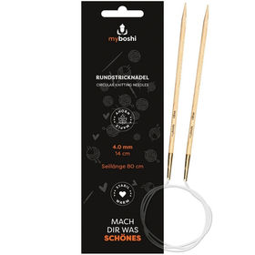 The myboshi circular knitting needle with 4 mm thickness and 80 cm rope length (including the two needles 14 cm long) is your practical tool for knitting projects with slightly thicker wool, such as myboshi No.1 or myboshi Samt (Velvet).