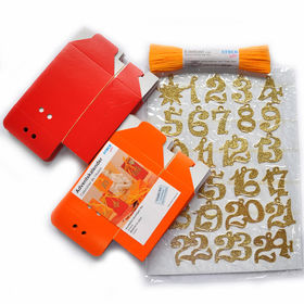 Contents: pre-cut gift boxes for putting together (12 orange and 12 red boxes), raffia 50 m, stickers (size of each approx. 4 cm).