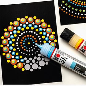 Water-based dot paint which dries raised and matt, 25 ml. The Dot Pen paint is vegan and suitable for many light and dark surfaces such as paper, wood, stone, glass, porcelain and textiles (up to 20% synthetic fibre content).