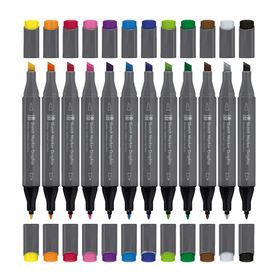 Set SUGARHOLIC with 12 markers: 12 x Sketch Marker Graphix (Primary yellow 919, Brilliant orange 925, Cadmium red middle 937, Permanent pink 906, Brilliant violet 950, Cerulean blue 952, Ultramarine blue 958, Light green 960, Phthalo green deep 976, Burnt umber 948, Cool grey 991, Carbon black 974)