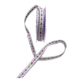 Ribbon with flowers pink / lilac, 10 mm. Price per meter.
