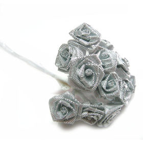 Satin roses silver colour, length 15 mm. Bouquet contains 12 pcs.
