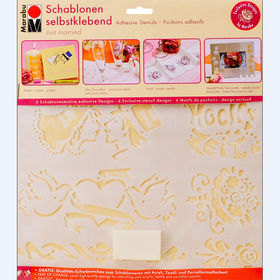 Self-adhesive stencils are ideal for combining with acrylic, textile and porcelain paints and can be applied to nearly all surfaces like paper, glass, porcelain, textile, metal, wood and terracotta. The DIN A5 stencils are self-adhesive, easy to clean with water after use and re-usable. Each self-adhesive stencil includes a small high-quality sponge made from first-class, fine-pored foam as a little extra which is particularly suited for stencilling on small surfaces and fine details. How it's done:
