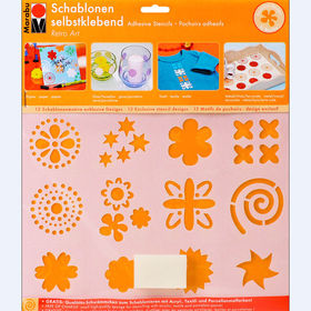 Self-adhesive stencils are ideal for combining with acrylic, textile and porcelain paints and can be applied to nearly all surfaces like paper, glass, porcelain, textile, metal, wood and terracotta. The DIN A5 stencils are self-adhesive, easy to clean with water after use and re-usable. Each self-adhesive stencil includes a small high-quality sponge made from first-class, fine-pored foam as a little extra which is particularly suited for stencilling on small surfaces and fine details. How it's done: