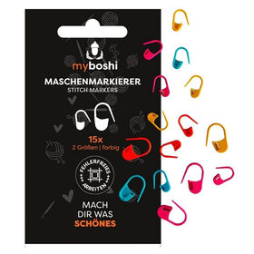 15 practical stitch markers in two sizes and four colors for marking specific stitches in the knitted piece, repeats, stitches when changing colors and much more.
