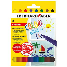 8 window painters with round tip and 3 stencils with motif scenes in a practical cardboard box for safe storage