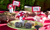 4 Cut out a rectangular from the red felt and a smaller one from the white one. Glue a stick (a toothpick) between them and then write down a name with felttip pen.