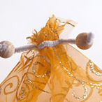 6 For the wings, cut out 30 cm of the transparent or gold ribbon, fold it and then tie it into a bow. Glue it with hot glue under the chin.