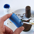 2 Draw a face on the top of the cork and glue the plastic eyes. Use fuzzy sticks (chenille wire or pipe cleaners) to make ears and paws and glue them on the cork. To make whiskers use the curly wire.