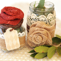 Make your own burlap roses and put them in a vase or decorate jars. -