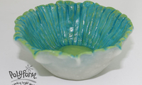 1 Form a pinch pot by pressing your thumb down into the center and pinch out the sides. Keep pinching until you have relatively thin, even sides and a bowl that you are pleased with. Smooth outside of bowl with your fingertips of any lumps or cracks. You should have a bowl that is roughly 3 ½" in diameter. Using a toothpick, make lines coming up from the center of the bowl to the edge on the inside of the bowl. Go all the way around. Make indentations all along the top of the bowl where each line comes up. Pinch top in 5 places equal distance apart. Almost giving it a flower feel. Allow to dry for 24 hours. Flip bowl over mid-way through drying time.