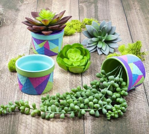 Transform a patio or garden with these color blocked pots painted with Patio Paint Outdoor™.