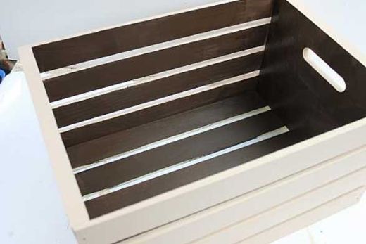 3 Use a 3/4" flat brush and Brown to basecoat all of the inside of the crate. Rinse brush.