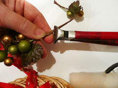 4 Kup zlatnih bobica skratite kliještima na duljinu od 2 cm, odrežite i par bobica sa vrha. Njih naljepite iznad mašnice.