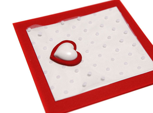 4 Na manji karton zalijepite trakicu od tila s točkicama. Na crveno srce zalijepite malo bijelo srce. Sve zajedno zalijepite na čestitku.