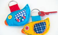 1 Na komadu papira nacrtajte oblik ptičice veličine koju želite, pa izrežite. Presavijte arak filca, precrtajte oblik, pa izrežite. Krila nacrtajte posebno. Krilima ostavite mjesta za porub. Izrežite žuti filc po obrisu krila, podmetnite šarenu krpicu u kontrastnoj boji.