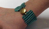 Kada ste prošili dovoljno redova do željene duljine narukvice, u zadnjem redu našijte jedan dio kopče.