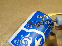 2 Nanesite Candle liner boju direktno iz tubice. Iglom probušite rupicu ako boja teže izlazi iz tubice. Ne trebate staviti puno boje, uvijek lako dodate ako vidite da je potrebno. Špahtlom razmažite boju preko motiva šablone (pazite da ne idete preko rubova).