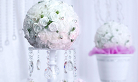 Cvjetna kugla poljubaca ili pomander od svilenog cvijeća i tila.