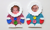 2 Prvo zalijepite rukave na tijelo, potom rukavice i "buce" te šarene gumbiće. Potom zalijepite kapuljaču na fotografiju. Orežite fotografiju.