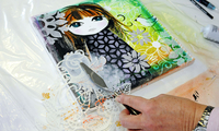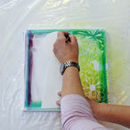 Odabrali smo šablonu s cvjetnim motivima i posprejali Mixed Media Art sprejem.