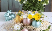 Napravite mini vaze od ljuski od jajeta i obojite ih metalik bojama Colorado Gold. Ukrasite ih s nekoliko malih cvjetića i imat ćete divan ukras za uskrsni stol.