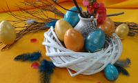 Igrajte se s bojama, aranžirajte pisanice sa perjem, laticama, granjem ili već prema tome što imate. Mi smo odabrali prekrasne chalky boje za ove pisanice.