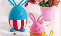 4 Pričekajte da se zečići u potpunosti osuše na sobnoj temperaturi (najbolje preko noći ili u trajanju 24 sata). Ako se pojave pukotine, možete ih prekriti svježom masom za modeliranje. Pričekajte da se potpuno osuši. Finim brusnim papirom zagladite cijelu površinu i obojite! Lice možete iscrtati flomasterom. Kad se boja osuši, zeku prelakirajte zaštitnim sjajnim lakom.