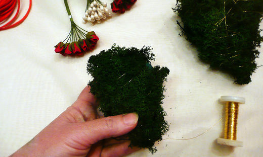 4 Omotajte srce tankom žicom da mahovina dobro prione na površinu.