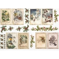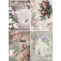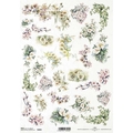 Rižin papir A4 Vintage cvijeće, leptir i vilin konjic