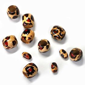Drvene obojane perle Animal Print sa širokom rupom, idealne za makrame. U pakiranju je 8 grama (oko 8 većih perli i oko 3 manje perle). Veličina perli je od oko 12 - 16 mm. Na većim perlama rupica je 8 mm u promjeru, a na manjim perlicama rupa je oko 1,5 mm.