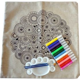 U setu su: 1 jastučnica 45x45 cm, 2 kista, 12 boja (dovoljno za oslikavanje jedne jastučnice) i 1 paleta.