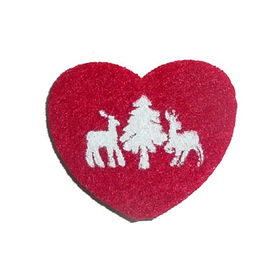 Srce od tkanine s uzorkom jelena i bora. Veličina 4,5 cm.